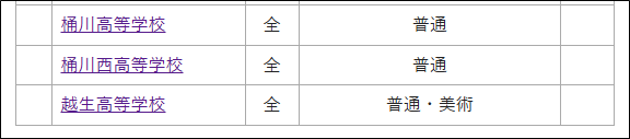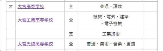 令和8年4月1日から、大宮工業は大宮科学技術、越生は越生翔桜、八潮南は八潮フロンティアとなっているが、旧校名のままである。