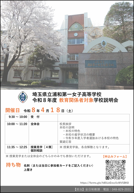 浦和一女が早くも塾説情報を発信しているので(3月2日発信)、お知らせしておこう。